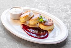 Сырники с домашним ягодным вареньем и сметаной