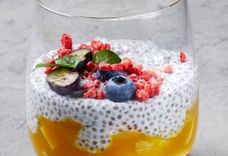 197 г • Молоко кокосовое, семена чиа, пюре из манго, банан, ягоды